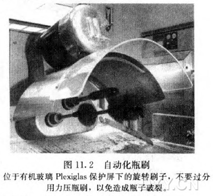 (a) 次日早,用試管刷手工刷洗或機器刷洗玻璃器皿,自來水沖洗 4 次后用去離子水沖洗 3 次。保持水流噴射非常有必要,否則每次都要將瓶子裝滿后再倒空。將許多瓶子固定在籃子中會使沖洗速度加快。